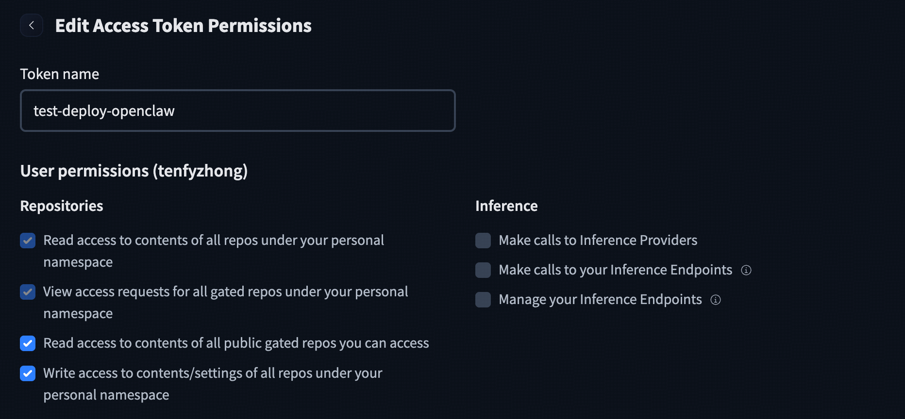 OPENCLAW_BACKUP_DATASET_REPO(格式:username/dataset-name) - Secret: